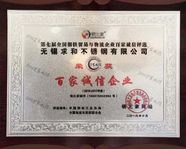 無錫求和不銹鋼有限公司是專業代理多家國內外不銹鋼廠的各種不銹鋼板材,在不銹鋼行業享有很大的知名度且具有行業影響力的一級代理商,尤其是特種不銹鋼的經銷和進出口貿易。連續幾年被評為“中國不銹鋼流通企業AAAAA(高級)級優秀企業”、 “百家誠信企業”、“無錫市3A級重合同守信用企業”,“中國不銹鋼行業貿易量前十名”。